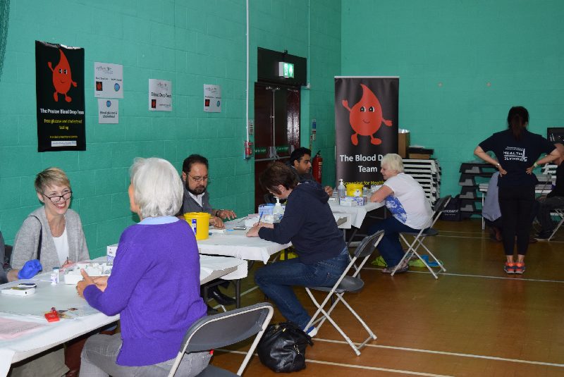 Many enjoyed the dance displays provided by the DanceSyndrome group or took the opportunity to try a sampler session of Reiki. A substantial number registered for a Health MOT to check out their health status. The Health MOT was supported by medical and pharmacy students and staff from the Universities of Manchester and Central Lancashire and local opticians. Of 115 visitors checked in the main MOT, no fewer than 43 (38%) were referred to their own GP for further investigation whereas 30 eye checks identified 7 individuals (23%) needing follow-up.